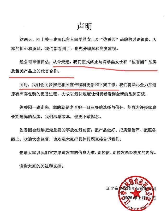 1月11日,她代言的“佐香园”品牌公开宣布解约,还紧急更换了印有她形象的外包装。